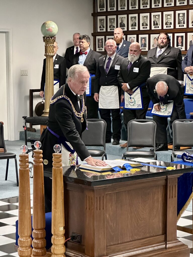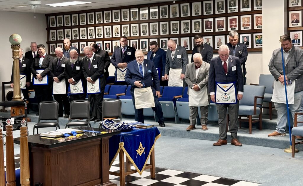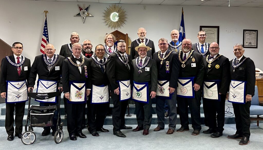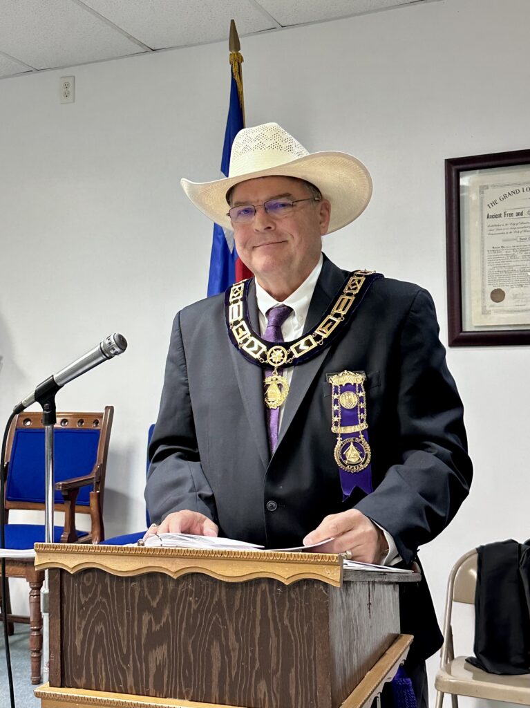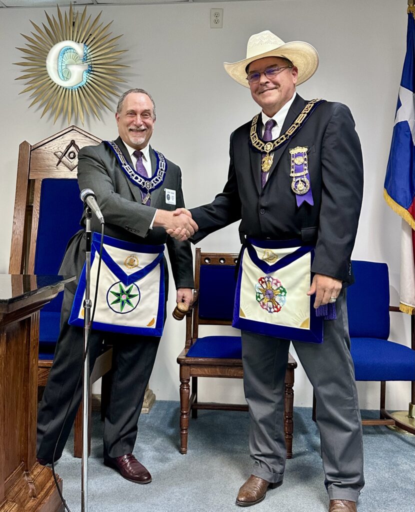 2025-2026 Installation of Officers. Installing Officer - The Most Worshipful Raborn Reader Grand Master of Masons in Texas.  Right Worshipful Brian R Dodson Past Grand Master of Masons in Texas as the installing Marshal and the Right Worshipful Dennis Reader Grand Marshal of the Grand Lodge of Texas as the installing Chaplain.
